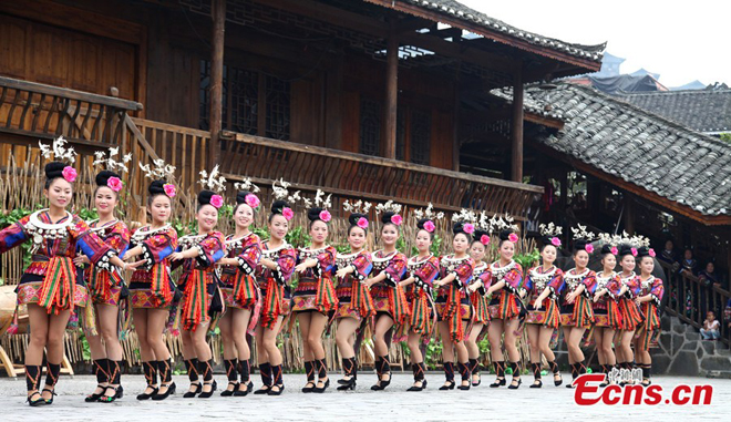 5. One-Thousand-Household Miao Village Known as a historical cultural ancient town, the village cluster is the largest Miao village in China with more than 10 natural villages and about 1,200 families, hence the name "one-thousand-Household Miao village". Visitors can interact with locals with Miao dances and craft making to better understand their culture. [Photo/China News Service]