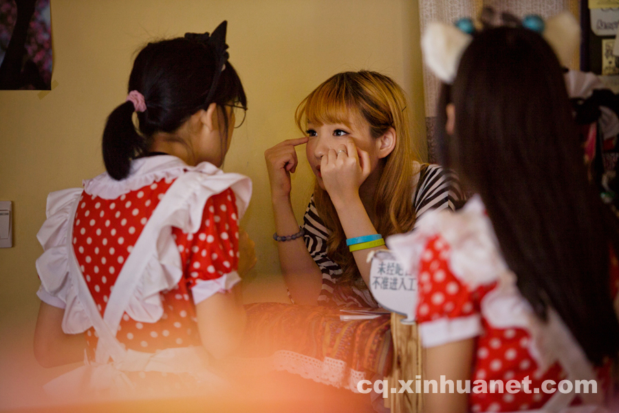 Maid-themed cafe comes from the ACG (animation, cartoon and game) culture from Japan and has become popular in Asia. Like in the cartoon story, the waitresses dressed in maid costumes serve the clients in the cafe. In China, maid-themed cafes are welcomed by the young people, especially the ACG fans. However they are criticized for the erotic connotation behind.Photo taken in June 2014 shows a maid-themed cafe in Shapingba district, southwest China's Chongqing. [Photo/Xinhua]