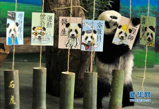Yuan Zai, the first Taiwan-born panda, is enjoying her first birthday cake, as she celebrates her first birthday at the Taipei City Zoo. (Source: Xinhua)