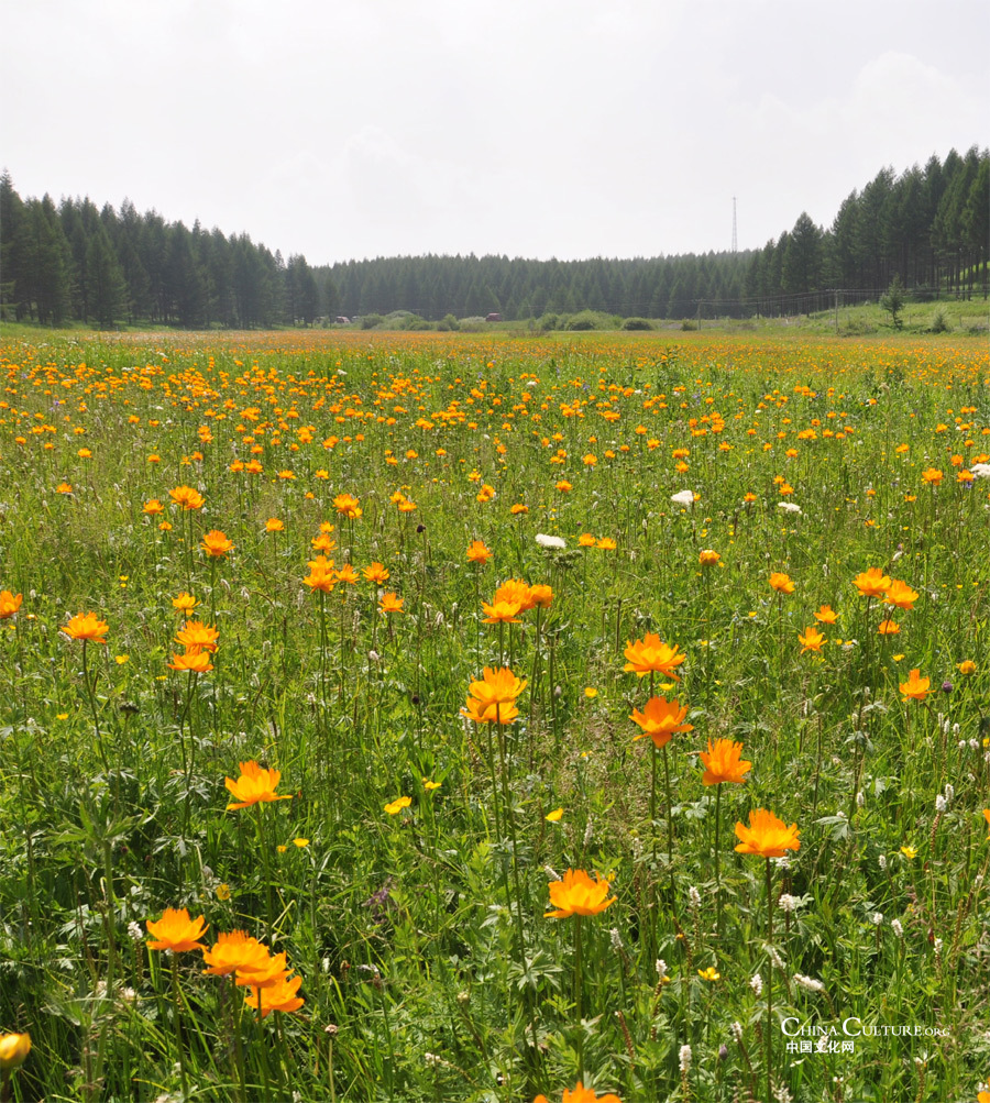 Renowned as "world of flower", Saihanba National Forest Park attracts visitors who are trying to escape the summer heat and enjoy a sea of colorful flowers , which adds to this tranquil setting. Photo taken on July 5, 2014 shows golden lotuses at Saihanba Forest Park in Heibei Weichang Manzu Mongolia Autonomous County. [Photo/chinaculture.org/ Yang Qi]