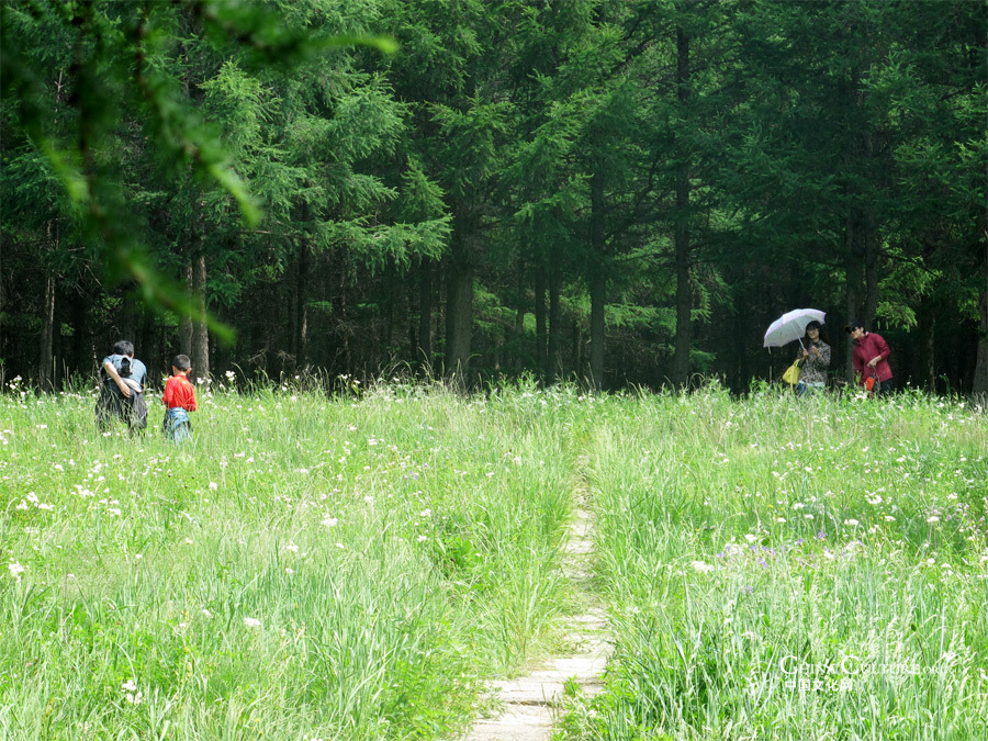 Tourists walk in a pine forest at Qixing Lake at Saihanba Forest Park in Heibei Weichang Manzu Mongolia Autonomous County, July 4, 2014. [Photo/chinaculture.org/ Yang Qi]