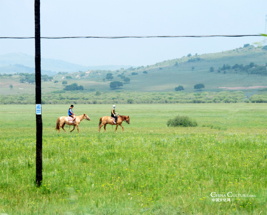 Tourists enjoy horseback riding at Saihanba Forest Park in Heibei Weichang Manzu Mongolia Autonomous County, July 5, 2014. [Photo/chinaculture.org/ Yang Qi]