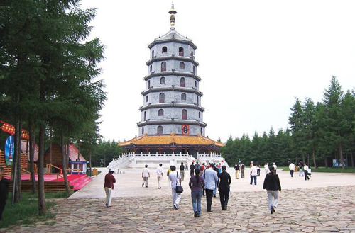 Saihan Tower was built in July, 1992 in an ancient style, with 7 stories and 8 corners. It is 42.8 meters high, with a diameter of 21 meters.