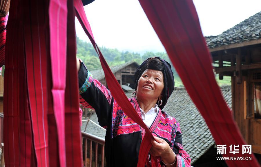 A Yao woman hangs Yao costumes during the “Clothes Hanging Festival.”