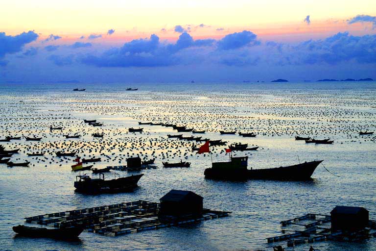 The seawater around the Zhoushan islands is clean and rich with sea mussels. Comprising 1,390 islands and 3,306 reefs, Zhoushan is the largest archipelago of China. The islands can be accessed through a small domestic airport built on the main island. (Source: China.org.cn/bbs.fengniao)