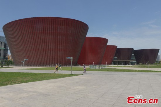 Photo taken on July 16, 2014 shows a stunning structure complex in Taiyuan, Shanxi province. The complex is formed by five buildings which look like instant noodle bowls in terms of their shape and color. Some netizens said the reason why the structures are built this way is because their designer knew that Shanxi has been crowned as the “noodle capital of the world.” [Photo/China News Service]