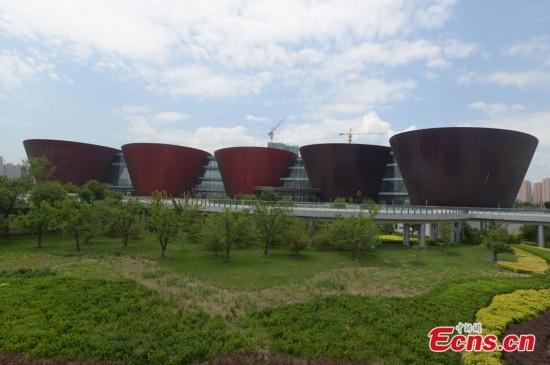 Photo taken on July 16, 2014 shows a stunning structure complex of a museum in Taiyuan, Shanxi province. The complex is formed by five buildings which look like instant noodle bowls in terms of their shape and color. [Photo/China News Service]