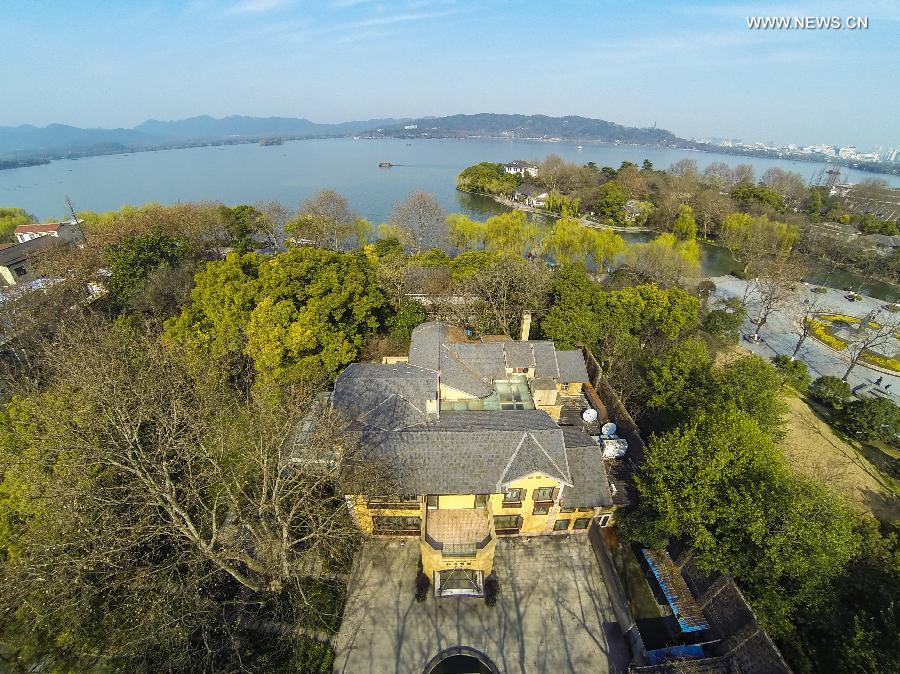 Aerial photo taken on March 16, 2014 shows the West Lake in Hangzhou, capital of east China's Zhejiang Province. (Xinhua/Xu Yu)