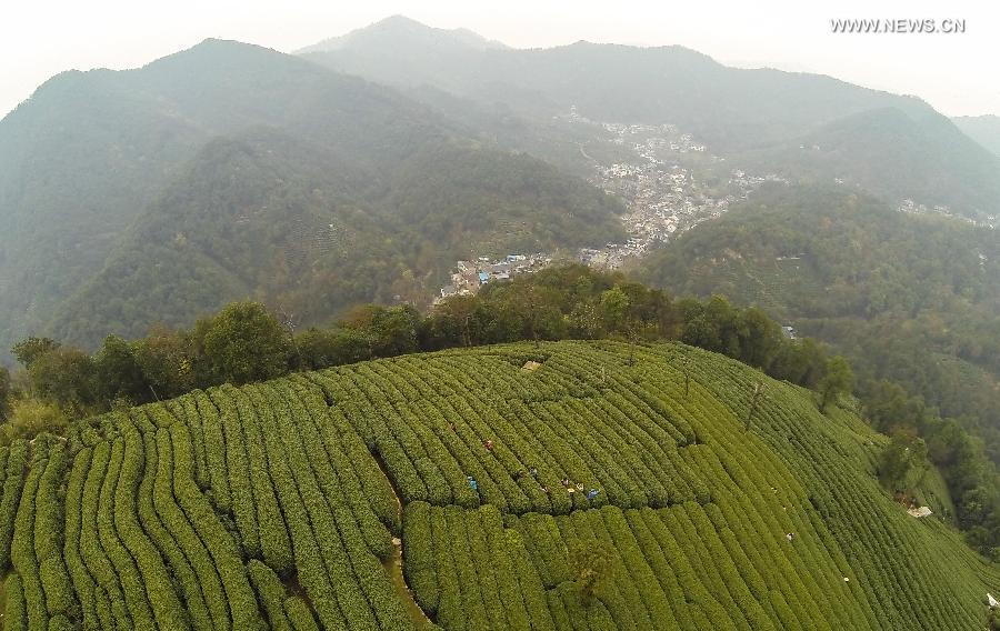 Aerial photo taken on March 20, 2014 shows Longjing Tea Garden in Hangzhou, capital of east China's Zhejiang Province. (Xinhua/Xu Yu)