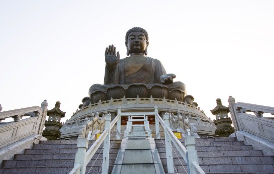 Big Buddha, also known as Tian Tan Buddha, is the world's largest outdoor bronze Buddha. Located on the peak of the Muyu Mountain, it was unveiled in December 1993. The Buddha is 34 meters tall including the lotus base. It weighs 250 tons and was welded with 202 pieces of bronze. It is surrounded by The Offerings of the Six Devas- six smaller bronze statues representing deities on their knees offering flowers, incense, a lamp, ointment, fruit and music to the Buddha.