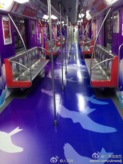 On July 15, 2014, Subway Line 1 in Hangzhou launched a series of love-themed trains ahead of the Qixi Festival featuring classic Chinese love stories including Niulang and Zhinu, Legend of the White Snake, and the Butterfly Lovers, often regarded as the Chinese equivalent of Romeo and Juliet. It is estimated that a love train arrives at a station along the line every 30 minutes. This year the Qixi Festival, also known as the Chinese Valentine’s Day, falls on August 2.(Photo/Weibo)