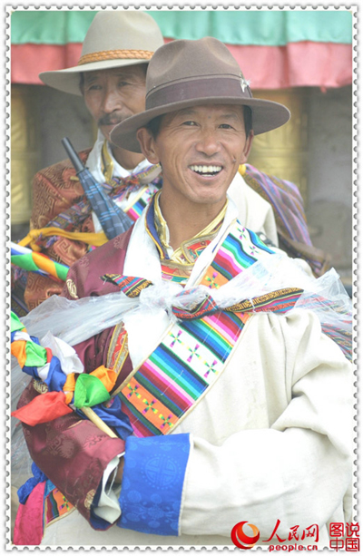 “Ongkor” in Tibetan means marching around the farm land. With a history of more than 1500 years, it is a traditional celebration of good harvest. The photo shows the Ongkor Festival celebrations in Zhanang County, Shannan Prefecture of Tibet. (People.cn)