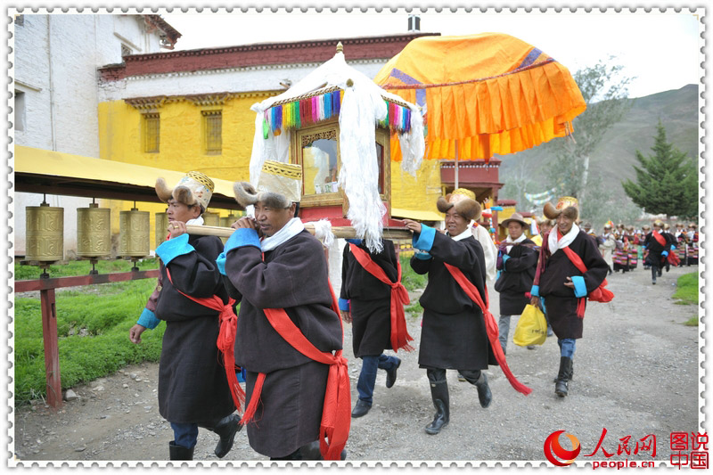 “Ongkor” in Tibetan means marching around the farm land. With a history of more than 1500 years, it is a traditional celebration of good harvest. The photo shows the Ongkor Festival celebrations in Zhanang County, Shannan Prefecture of Tibet. (People.cn)