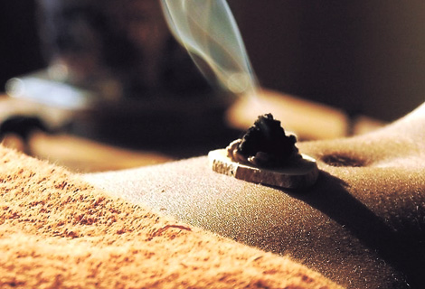 Yan's family improved the moxa piles or cones placed on the skin by compressing them so they burn longer. Only about seven to nine pieces of moxa are needed, compared with dozens in the old days. To accelerate the festering process and protect the wound from infection, the wound is sealed with an herbal plaster that creates humidity and raises the temperature.