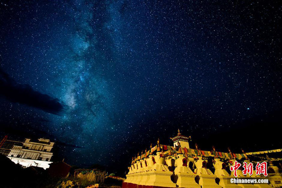 Waqie pagoda forest combined with countless prayer flags form the most fascinating scenery in a summer night in Hongyuan County of Aba (Ngawa) Autonomous Prefecture, Sichuan province. (Chinanews/Yang Yaguang)