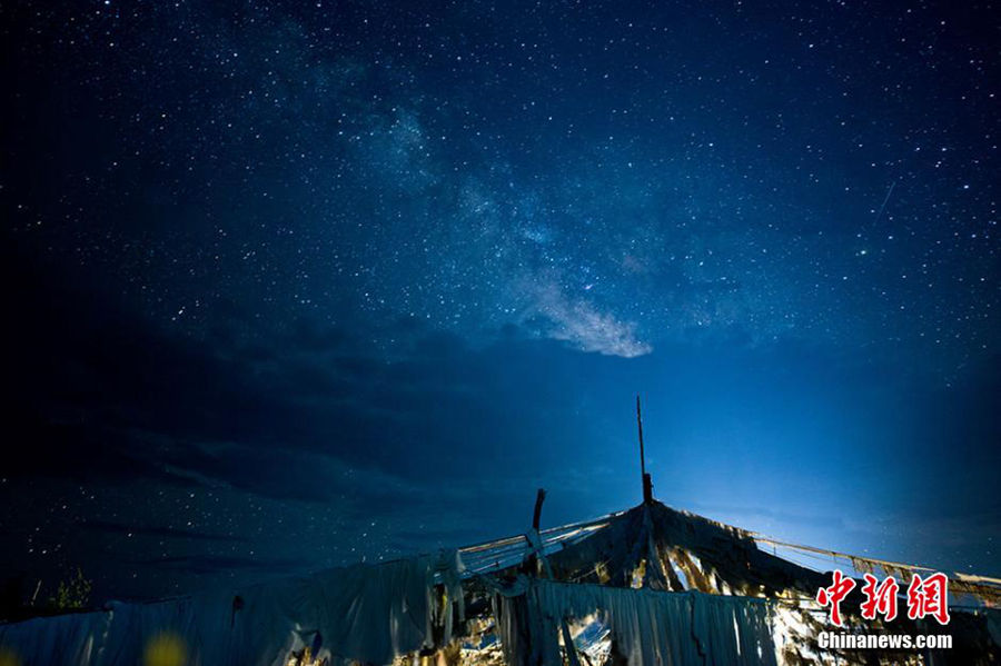 Waqie pagoda forest combined with countless prayer flags form the most fascinating scenery in a summer night in Hongyuan County of Aba (Ngawa) Autonomous Prefecture, Sichuan province. (Chinanews/Yang Yaguang)
