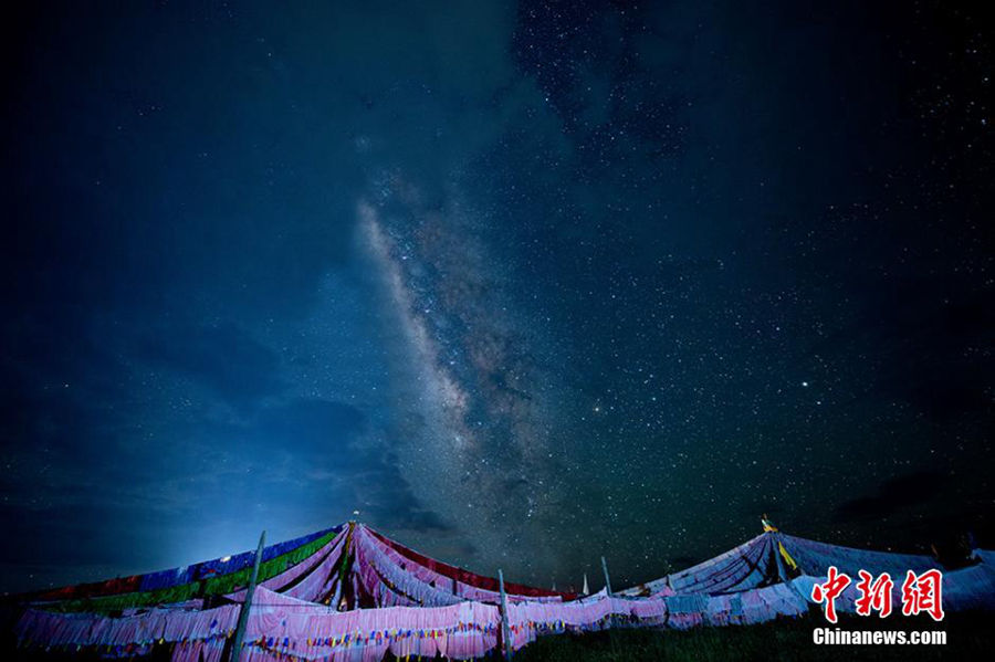 Waqie pagoda forest combined with countless prayer flags form the most fascinating scenery in a summer night in Hongyuan County of Aba (Ngawa) Autonomous Prefecture, Sichuan province. (Chinanews/Yang Yaguang)