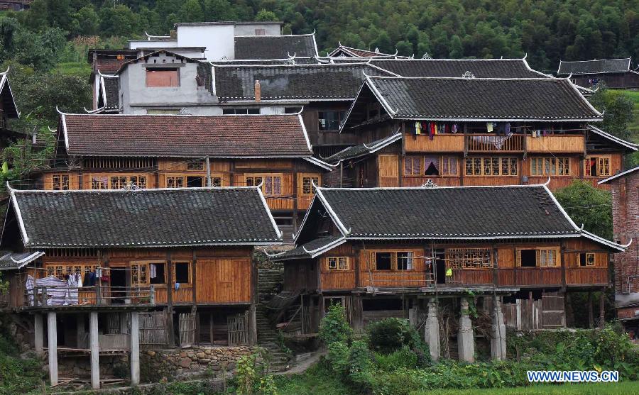 Photo taken on Aug 13, 2014 shows stilted buildings of Miao ethnic group in Rongshui Miao Autonomous County in Liuzhou, south China's Guangxi Zhuang Autonomous Region. (Xinhua/Long Linzhi)