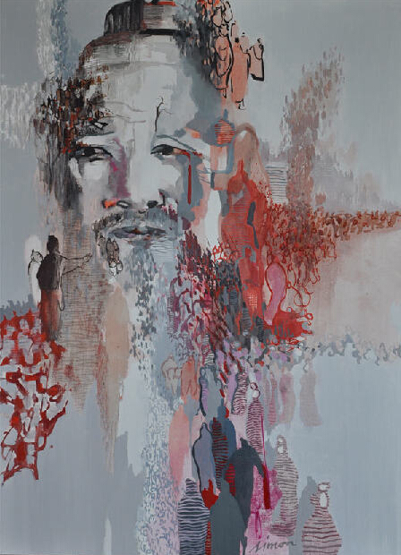 Sometimes, the painter sketches imaginary faces quickly and sometimes he spends days waiting for inspiration. He never plans in advance what he will paint but he is fond of letting his brushes take him to places beyond his imagination.