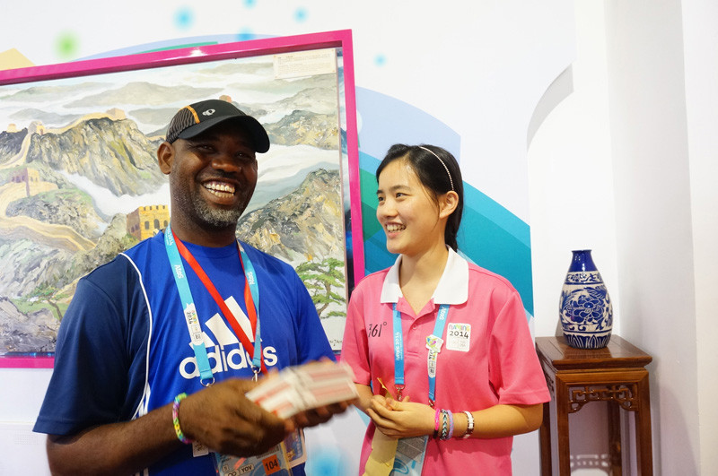 The Olympic official from Haiti falls in love with traditional Chinese folk music, and a volunteer sends him a CD as a gift.[Photo/Shi ZhongYin]