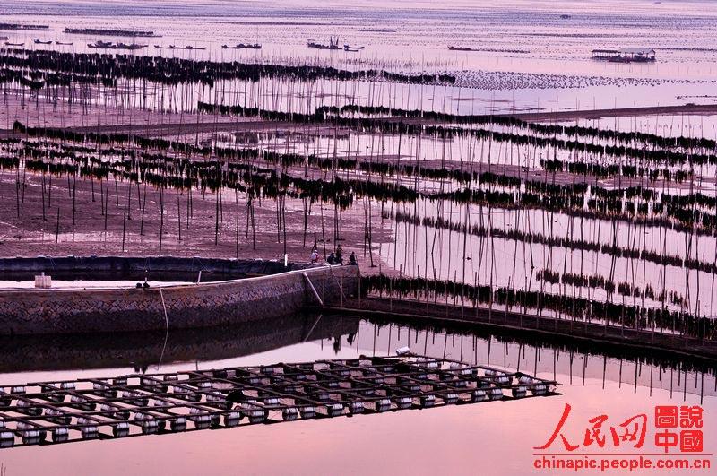Xiapu, Fujian province. The fishing village on the sea is referred as the "Offshore Venice" by tourists. Before houses were built along the beach, most fishermen lived on boats for generations by collecting marine products. Many of them still live on boats. Xiapu has the country's largest mudflat, rich in sea products and especially kelp, laver and oysters. [Photo/People's Daily Online]