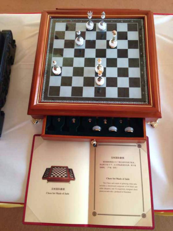 A chess set made of jade given by Chinese President Xi Jinping as a gift to Indian Prime Minister Narendra Modi on September, 17, 2014. [Photo: CRIENGLISH.com]