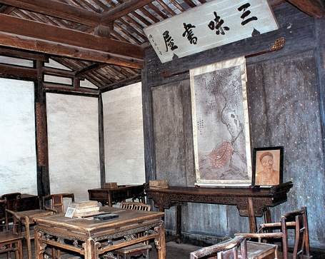 This house museum foregrounds the intimacy of the small family unit; one of the most touching aspects is that the best lighted and airy room was given to his young son, whose photographs at various ages adorn the walls. His battered toys fill a bookcase. (If they are originals, someone was unable to bear the poignancy of discarding a jigsaw with missing pieces.) Lu Xun was nearly 50 when his only child was born; like most parents in these circumstances he doted on him.