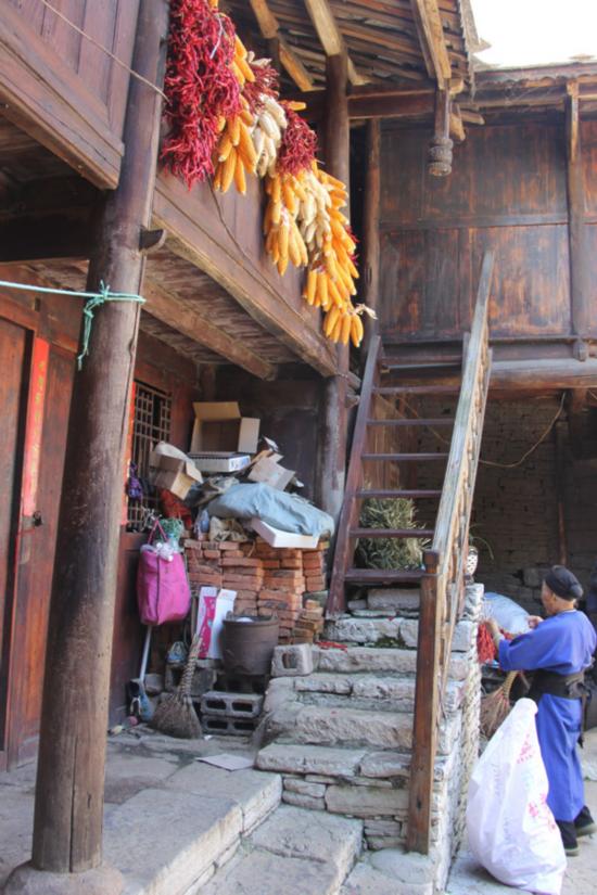 An older Han woman tidies up her yard in Anshun City, southwest China's Guizhou Province. Traditional Han people in Anshun preserve a lot of traditional customs from their old generations. Some of their houses are quite similar to those traditional ones in the regions south of the Yangtze River, where their ancestors came from. [Photo: CRIENGLISH.com / Wang Wei]