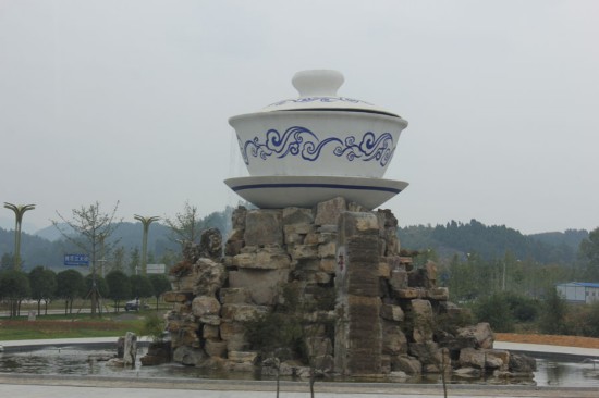 The photo shows a giant decorative tea cup in the Meitan County, southwest China's Guizhou Province. [Photo: CRIENGLISH.com / Wang Wei] |