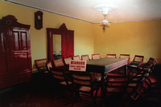A file photo showing the meeting room of the Zunyi Conference hangs on the wall in the historical site of the Zunyi Conference in Zunyi City, southwest China's Guizhou Province. The Zunyi Conference was held in January 1935, since when Mao Zedong took over military command and become the leader of the Communist Party. [Photo: CRIENGLISH.com / Wang Wei]