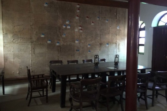 The photo shows a meeting room in the historical site of the Zunyi Conference, with a map marking the sites of the Kuomintang Army forces and the Red Army forces on the war during that time. [Photo: CRIENGLISH.com / Wang Wei]