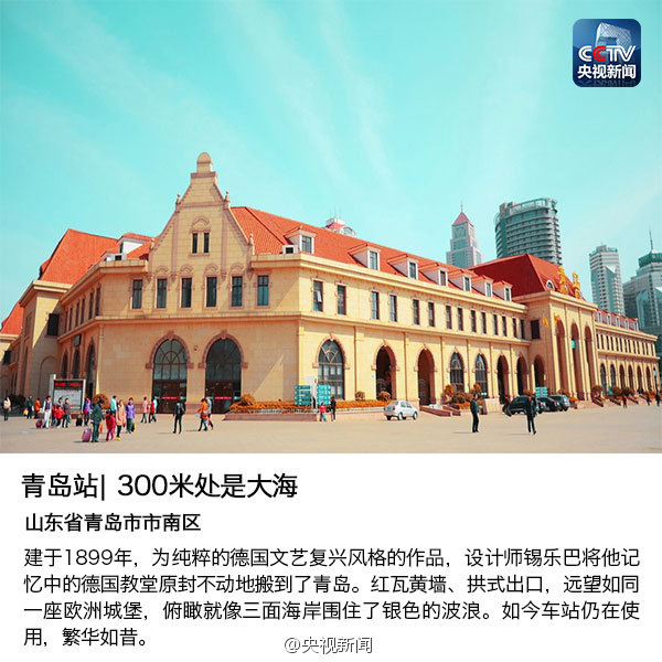Qingdao Railway Station is 300 meters away from the sea. [Photo/CNTV]