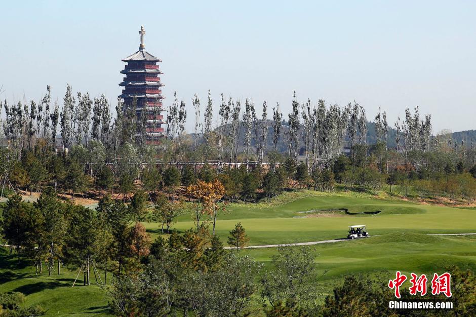 Photo taken on on Oct.16, 2014 shows key buildings for the 2014 APEC meeting on an islet on Yanxi Lake in Huairou district, Beijing, including an international center, a boutique hotel and villas. APEC Economic Leader's Meeting will be held here from Nov. 10 to 11. [China News Service/Han Haidan]