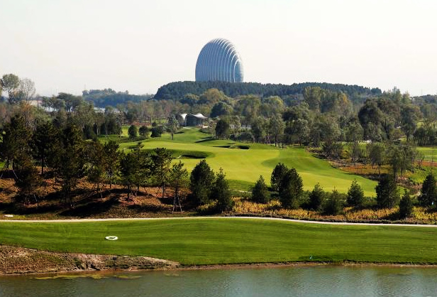 Photo taken on on Oct.16, 2014 shows key buildings for the 2014 APEC meeting on an islet on Yanxi Lake in Huairou district, Beijing, including an international center, a boutique hotel and villas. APEC Economic Leader's Meeting will be held here from Nov. 10 to 11. [China News Service/Han Haidan]