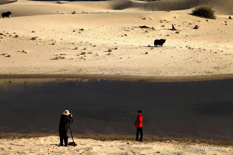 Tourists take photos on a tidal wetland in Gonggar county, southwest China's Tibet autonomous region, Oct. 25, 2014. [Xinhua/Pan Xu]