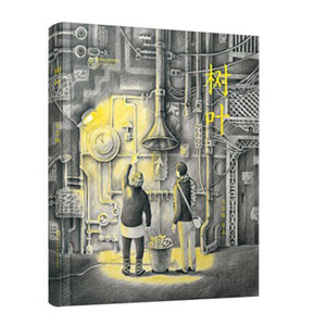 The Leaf is a wordless graphic novel about a lonely young man and his sense of belonging in a labyrinthine city painted in grays and blues. It's a world of industrial piping that changes when the man finds a leaf that emits light. He discovers the city's secret and the power of a single leaf in this industrialized world.