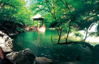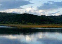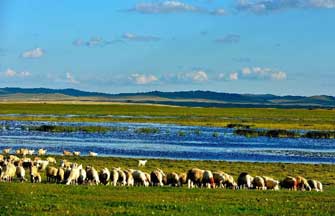 · Mist-shrouded mountains seen near lakes in Arxan, N China
