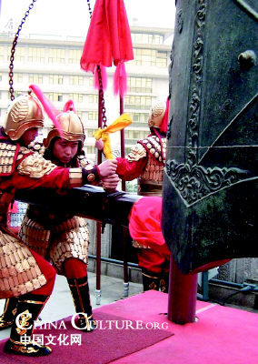 Bells and drums emerged early in China's history, a fact confirmed by the China's first ancient poem collection Classics of Poetry, which includes verses about bell and drum performances. When the Buddhism was introduced to China during the Eastern Han Dynasty (AD25-220), bells and the drums gradually played a more important role in Buddhist ceremony. Generally, every Buddhist temple had a bell tower on its east side and a drum tower on its west side. Every day before the dawn, the bell would be struck and after the dusk, the drum would be struck again to assemble the Buddhist monks to recite scripture.
