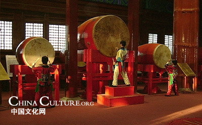 Later, the drum was widely used in sacrifice, dance, and music, as well as in attacking enemies, expelling beasts and serving as time teller and alarm. Drums emerged in national bands, operas, boat races, and lion dance performances as well as through festival gatherings and competitions. The structure of the drum is relatively simple, consisting of a hollow cylinder or hemisphere with a membrane stretched tightly over one or both ends, and it is played by beating with the hands or sticks. There are various kinds of Chinese drums, including the waist drum, flowerpot drum, and so on.
