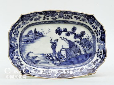 Most export-oriented Chinese porcelains displayed in this exhibition, now collected in Swedish museums, were made to cater to European tastes, including famille-rose engraved fruit baskets decorated with four-color flowers, famille-rose fish-shaped soup basins, coffee sets, cheese containers, water jars, chandeliers, etc. A blue-glazed large bowl made during the reign of Emperor Qianlong was even decorated with the pattern of Ship Gothenburg.