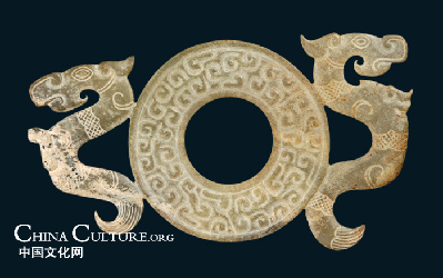 Jade Bi (a round flat piece of jade with a hole in it) guarded by dragons from the Warring States period (475-221BC)