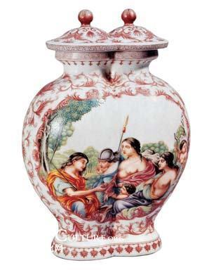 Famille-rose enamels were first introduced during the Kangxi period (1662-1722) on Imperial wares. The best quality Famille-rose export wares date from the Yongzheng period (1723-1735). At this time the enamels tended to be soft and translucent, and the drawing very fine. In this section you will find, among many other things, good armorial porcelain and some pieces decorated with European scenes.