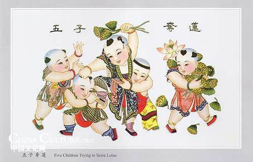 As a main kind of folk woodcut New Year pictures,Yangliuqing New Year pictures are named after its production place - Yangliuqing Town of Tianjin. With a history of 600 years Yangliuqing New Year pictures inherited the painting traditions of the Song (AD 960-1279) and Yuan (AD 1271-1368) dynasties and absorbed the essences of woodcut paintings, craftworks and stage arts of the Ming Dynasty (AD 1368-1644).