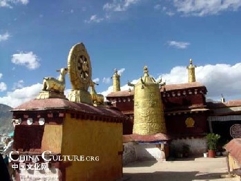 The gate of the monastery faces west and is close to Barkor Street which encircles Zuglakang Monastery. Everyday, believers make a clockwise circular perambulation to show respect for the Buddha.