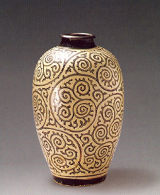 During the Song and Yuan dynasties, porcelain made in the city and other southern China kiln sites only used crushed and refined pottery stones. Among the famous kiln sites, Jizhou is noted for its delicate products. The vase is glazed with a dark coffee color at its mouth and bottom, and the main body is decorated with pattern of grasses.