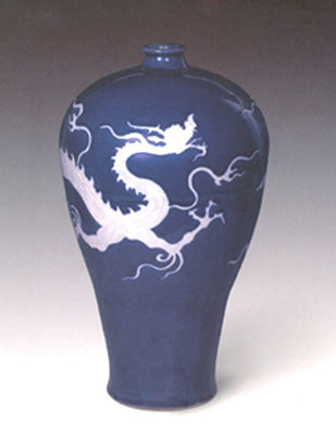 This vase is widely recognized as one of the master works produced in the Yuan Dynasty. In comparison to others produced in the same age, it has a much more balanced visual depth and motif. Against the background of its blue-glazed body, the white dragon makes for strong visual richness.