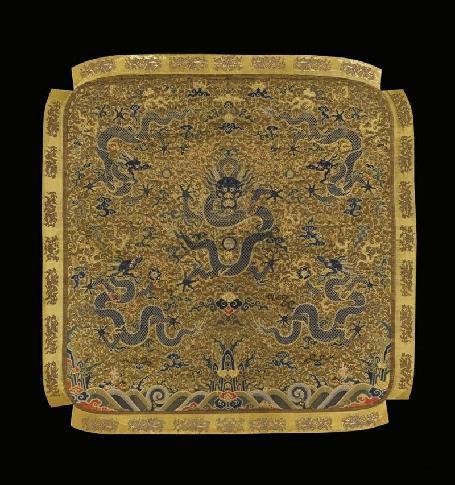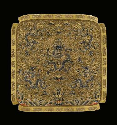 Usually patterns of Fine Brocade embrace geometric figures as the overall framework. There are varied designs inside the framework, such as flowers, the eight treasures (including the diamond knot, antique coin, calligraphic work, painting, etc), instruments used by the Eight Immortals (including the fan, sword, gourd, cypress branch, flute, lotus, etc), the eight Buddhist mascots (including the divine pot, umbrella, Dharma-cakra, lotus, double fish, whelk, etc), and lucky herbs. Fine Brocade is best represented by “Brocade Embroidered with Floral Patterns and Coiling Braids.”