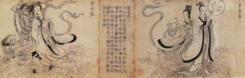 A long-scroll painting of the Painting of Nine Songs, held in the Jilin Museum in China, painted by Zhang Wo, the Yuan Dynasty