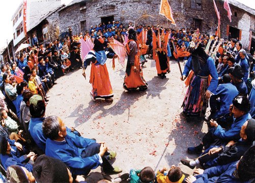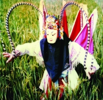 Banner, robe and mask are three requisites for Di Opera at Anshun.