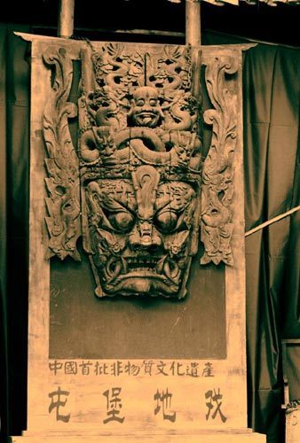 The masks used in Di Opera are also typical folk arts of Guizhou. They are very refined and full of liveliness. With high aesthetic value, the masks serve as nice souvenirs for tourists. Most of the masks are made of clove or poplar and carved by a technique combining the bass-relief with hollowed carving. They mainly apply colors such as red, green, blue, white, yellow and black. A gold-overlay and silver-blush can both be used to highlight the color. A mask consists of three parts -- face, helmet and ear -- which are carved into various kinds of heroic figures in an exaggerative style.